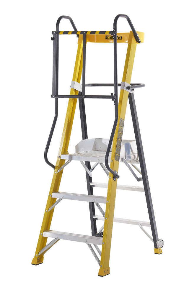 -Lightweight steps with high safety rail providing added safety when working at high levels